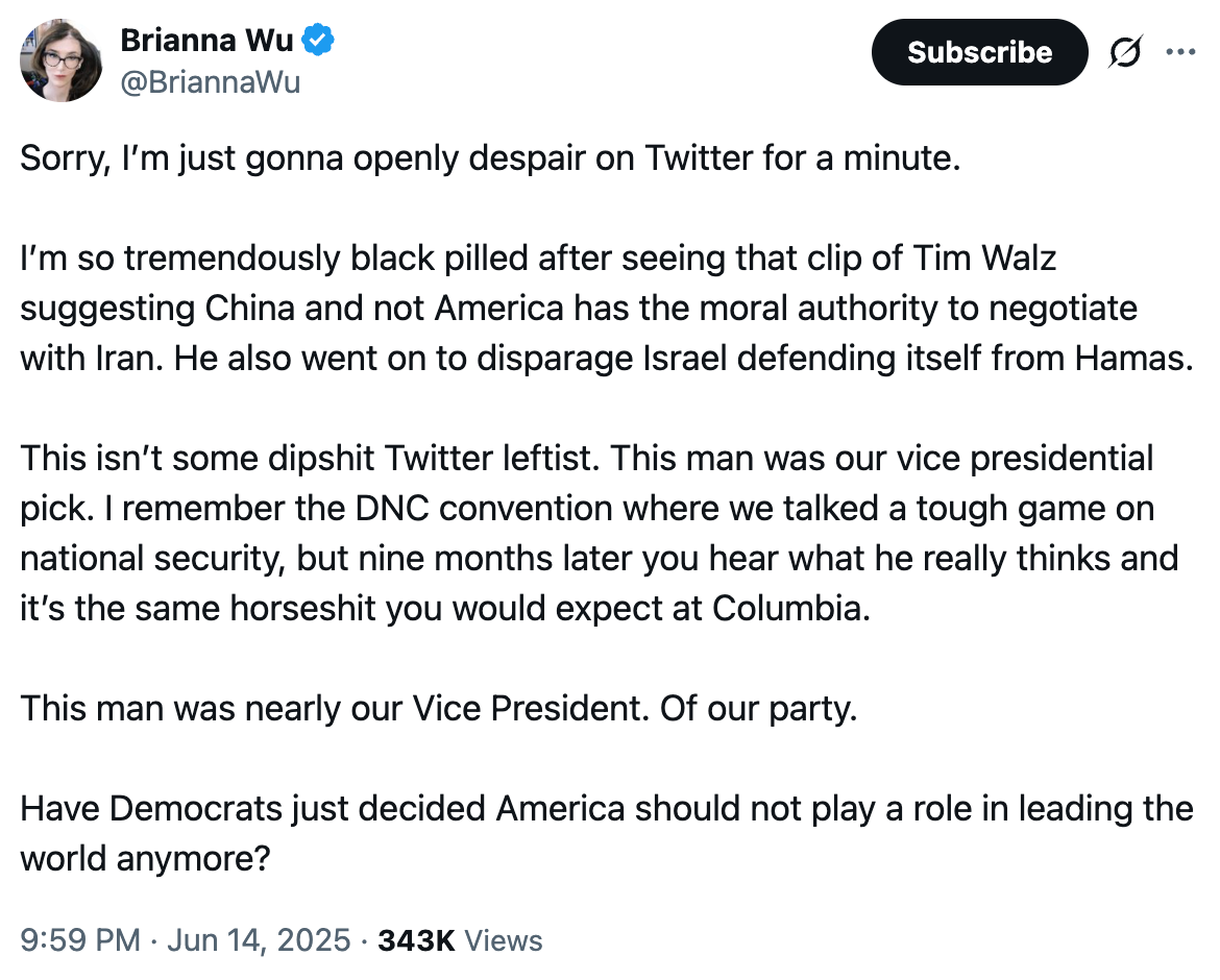“Carthago delenda est.” This seems to be the question that fractures MAGA. Should we bomb Fordow with the Israelis or not? Are the Ayatollahs finished in Iran? Tulsi releases a docu-commercial on Hiroshima. Tucker says things and Trump doesn’t like it. Tucker was snarky with Ted Cruz and it was great. Love it or hate it, MAGA is such a popular slogan that they’re trying to pull it away from the original to get some energy. But it just won’t work. Meanwhile, there was a military parade in DC for the Trump’s birthday250th Anniversary of the Army, and bigger parades on every street corner everywhere.
