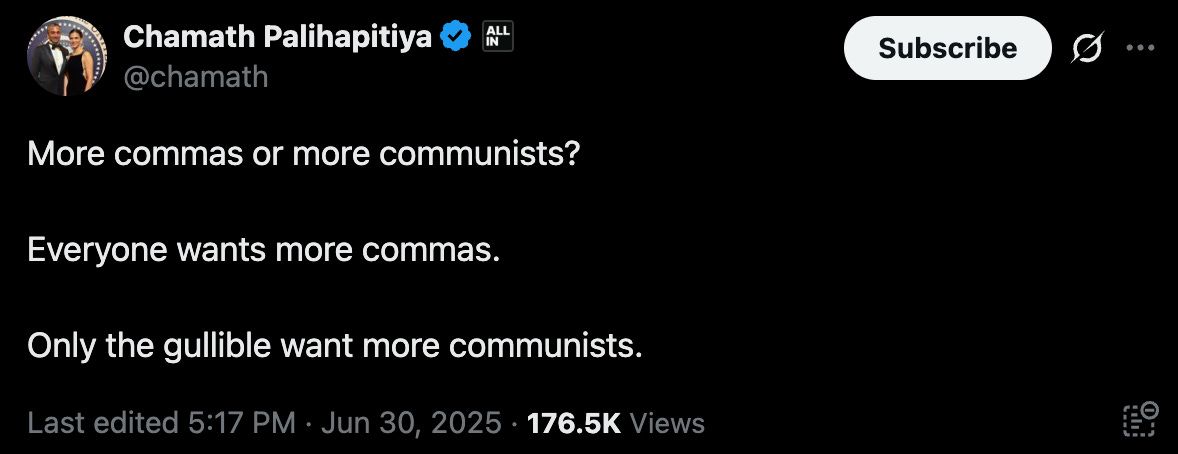 And the Big Beautiful Bill was signed just in time for Trump to get a PRO-AMERICA (All Caps of course) bill signing ceremony right on July 4th. Funny how that works. Elon thinks the bill is big but not beautiful. Apparently more money will be spent on Republican primaries next year. And maybe Elon will start a new political party? Also maybe he’ll learn the full “Vox populi, vox dei” quote, which suggests something quite different than his version.