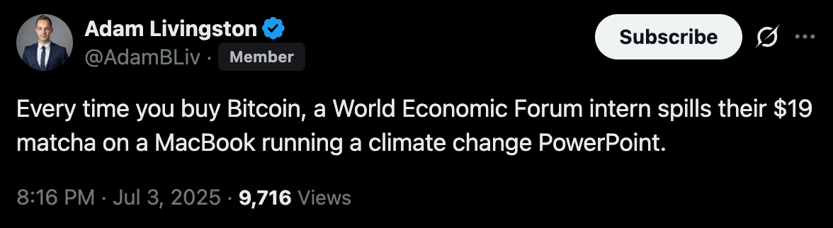 Markets are bumping along excitedly, even if Zohran doesn’t like billionaires. Inflation is down. FOMC meetings are coming. OBBB tax cuts are settled. And July has a record of being green. Bitcoin is chugging along too, right below the ATH, steadily consolidating. Second half of the year fireworks are expected.