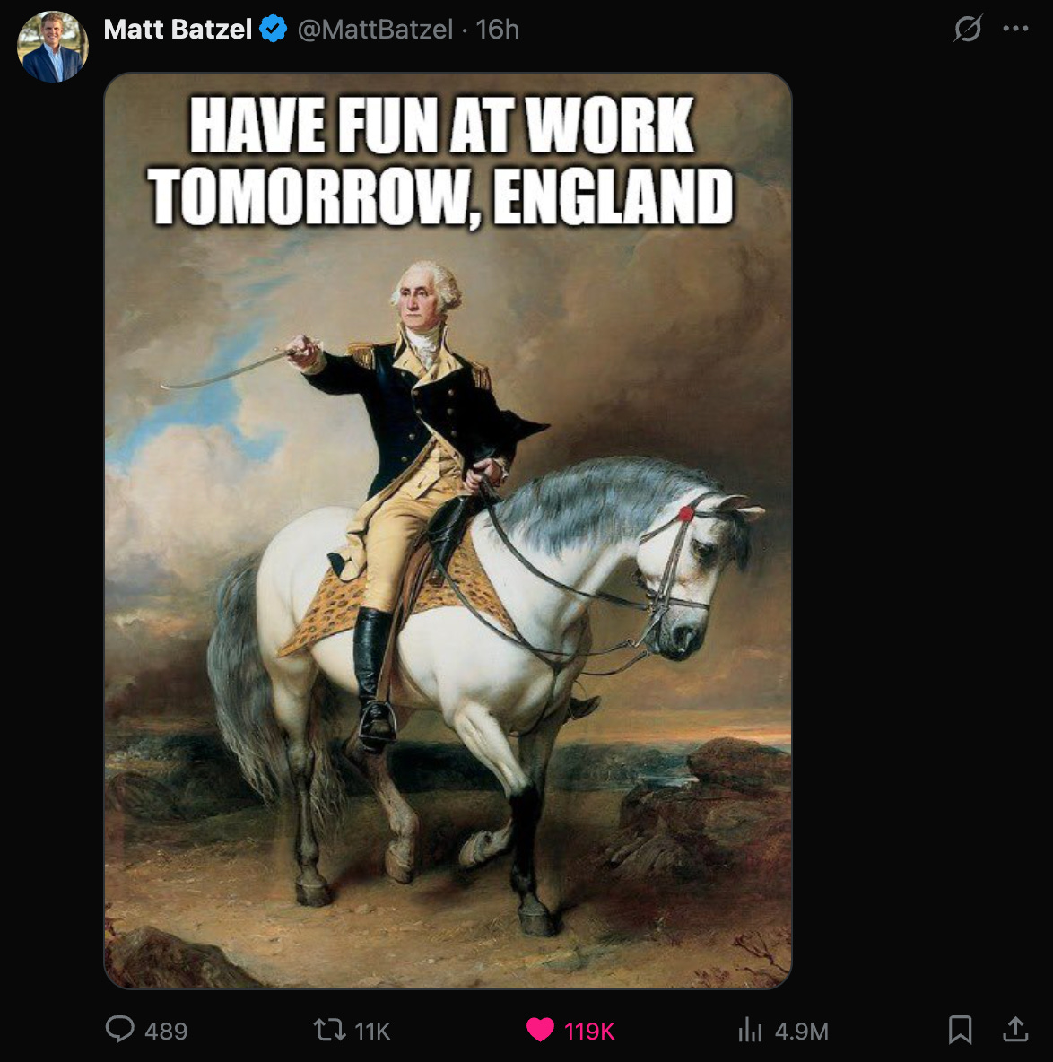 In the meantime, Happy 4th of July! 🇺🇸🇺🇸🇺🇸 We’re 249 years old and still going strong. Next year is going to be big. It’s going to be YUUUUGE. How huge? Think Colosseum. Think Gladiators. Yes, we’re going to have a UFC fight on the White House lawn apparently. That tells you where we are in the arc of history I guess. There will be lots of writing. But that’s next year. 250 is the Sestercentennial, or even better, the fancier Semiquincentennial. It gets all the news, but as anyone married will tell you, each year is a milestone. Your 9th anniversary is just as great as your 10th even if the traditional gift is pottery versus, err, tin. So celebrate 249 too! It’s the Novemquadragintaducentennial! Enjoy the fireworks!
