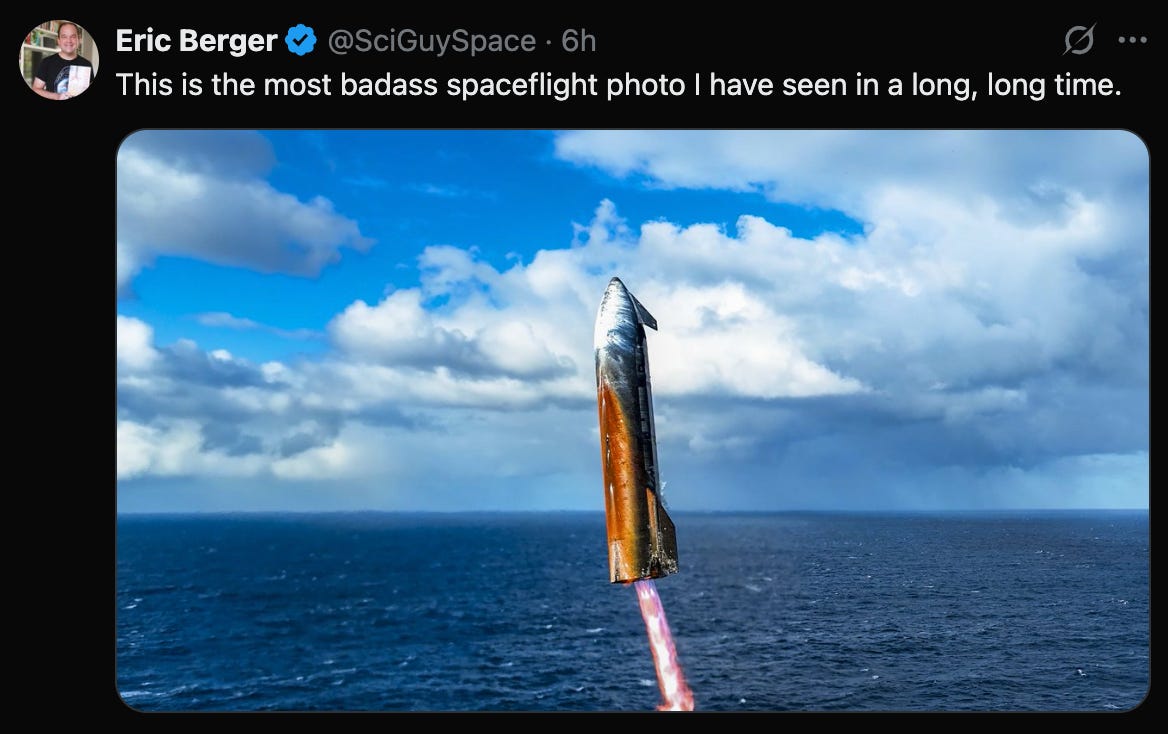 Starship had a ridiculously, stupidly good tenth test flight. On purpose failure modes were tested and passed. The ship was damaged and still made a perfect landing. And the pictures are glorious. CNN reported about it in good faith.
