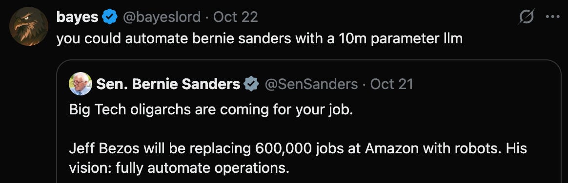 But there was more! The shutdown continues. Bernie admits Trump is his heir. Then gets mad at Amazon for efficiency. Fetterman declares Groundhog Day. Klobuchar tries to make people feel bad for early-retiring boomers and fails. Hillary gets mad about the East Wing. JD Vance gets an answer for Harry Sisson in response to Trump’s latest ridiciulous AI tweet. This timeline is the craziest possible timeline.