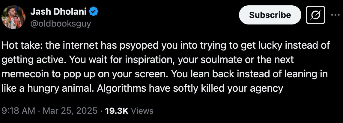 Jevons Paradox: A Personal Perspective - Fantastic article that helps us move past trying to keep up with all the slop by making ourselves slop and instead asks us to “become relentlessly, unapologetically you”.