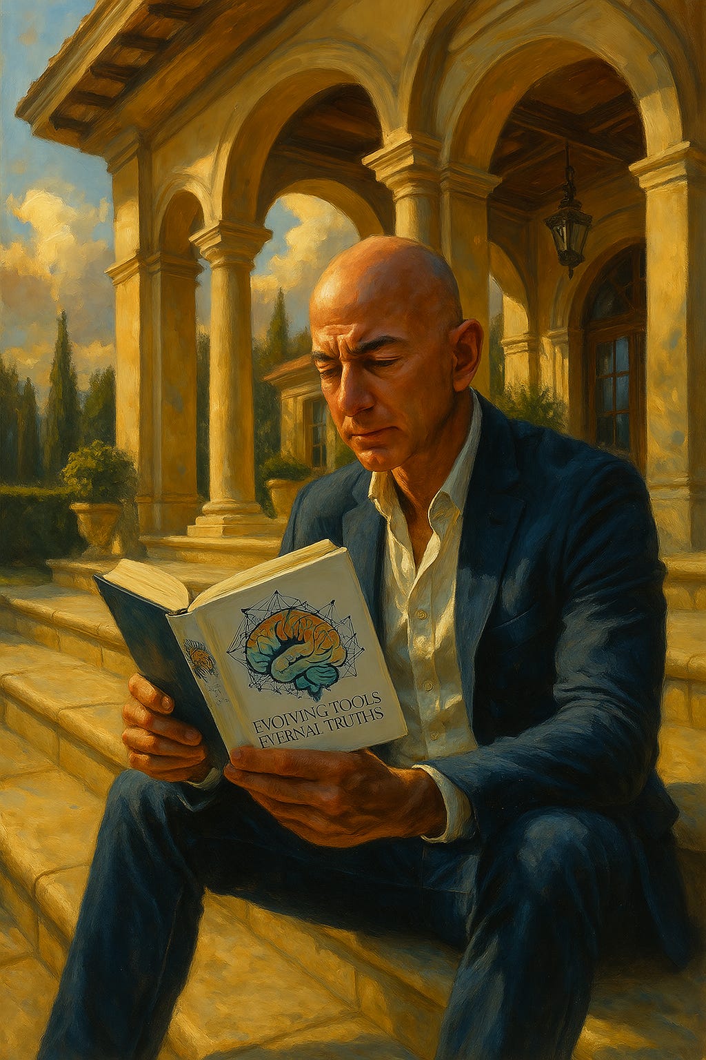 And let’s not focus on Gemini Pro, the new Imagegen really is awesome! I’ve used it to remodel two rooms in my house already. I mean look: here’s a very wealthy and famous man whose name does not rhyme with Beff Jezos relaxing on his loggia reading the hardcover version of the renowned and prestigious Brains Are Plastic (coming soon).