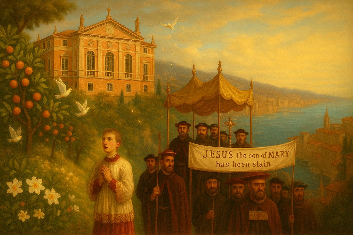 Outside the young boy-priest passed singing clear,