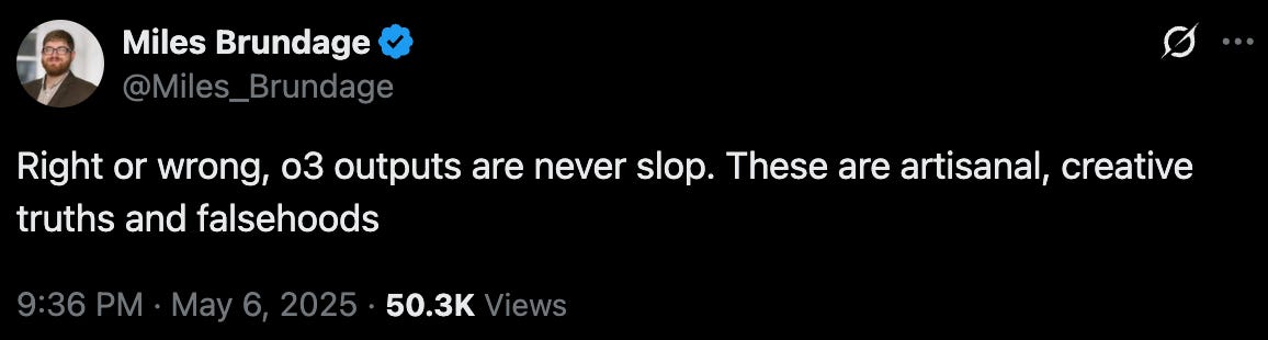 The world did not stop during Conclave. OpenAI announced it would remain a non-profit in control of a for-profit company that is now also a public benefit corporation. Clear as mud just like everything else related to OpenAI, and it always seems like a trick.. a little legerdemain to make sure you don’t see what’s actually happening over there. Sam wrote a letter about it and also testified with a few others in front of congress this week. And they bought Windsurf for $3B, but nobody quite understands that one.