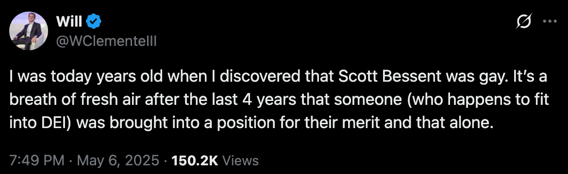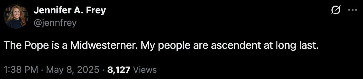 The White House was insufferable this week too, since they first memed this silliness and a week later we actually have an American Pope. But memes are the new official government communication apparently. We’ve got May the 4th, Gala dinners, and even this gem.