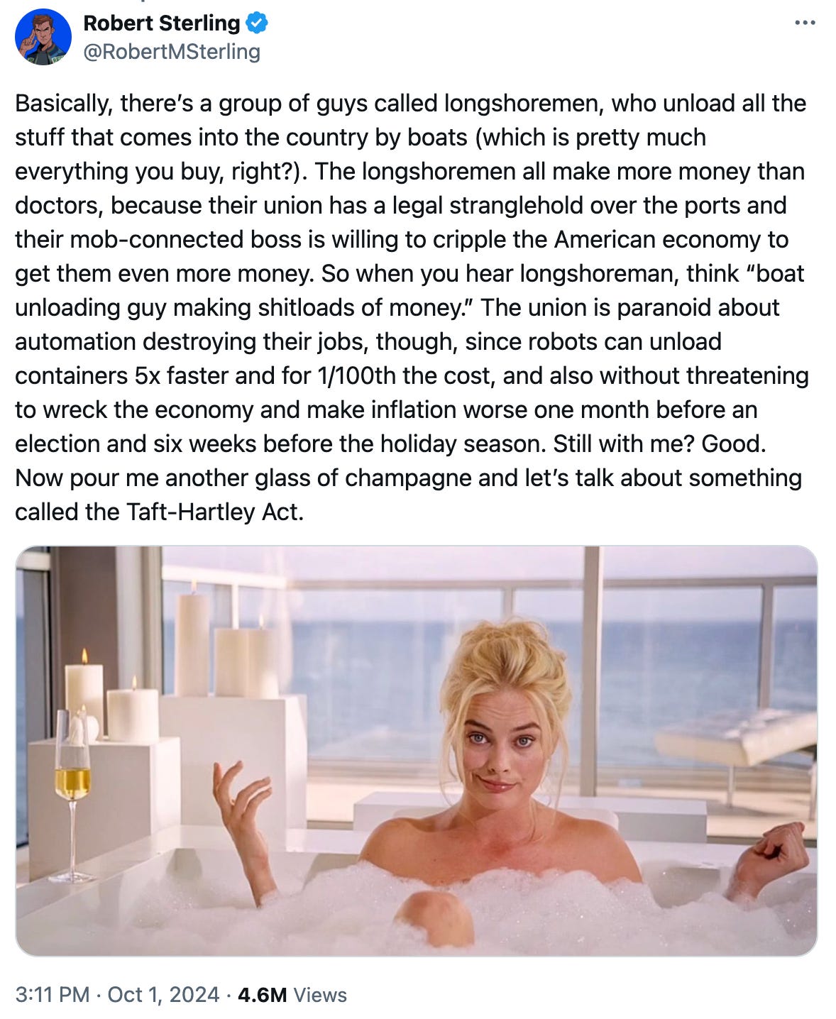 The Biggest Man-Made Disaster Ever - Lots of commentary flying around about the ILA strike and I found this to be an excellent dive into the problems. In particular, the misaligned incentives here that make some inefficiency and lack of automation apparently a good thing for all parties.