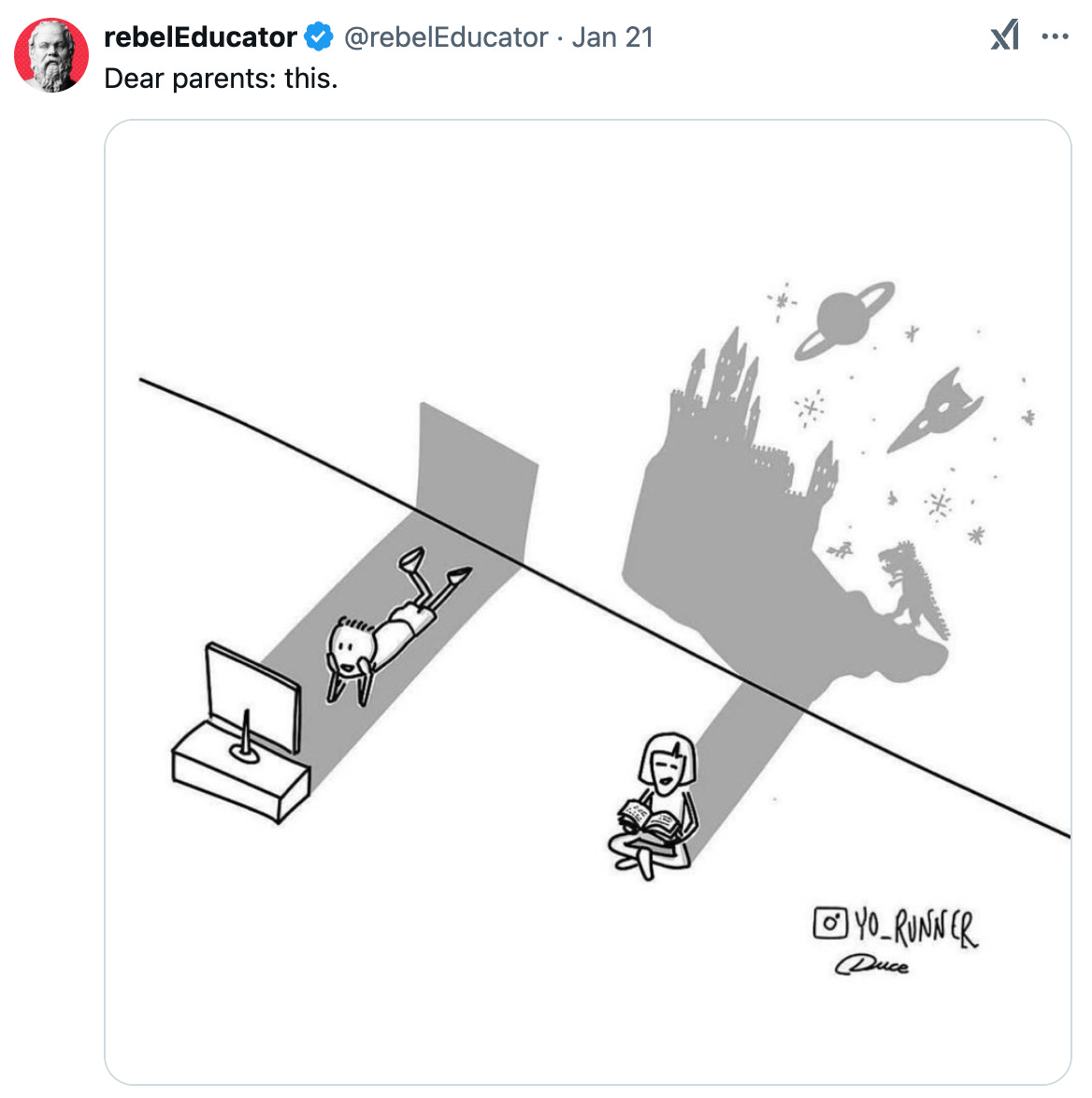 Who can thrive in this flood? Readers and writers. They can sift signal from noise and think independently while others let algorithms think for them. Reading books builds independent thought. All of the action is built in your mind not provided to you on a screen. It becomes your scene and your vision of the story rather than someone else’s. Books are longer than other media too, and some thoughts are big enough that they can only fit in books. And writing is thinking on paper. Those that learn to write well, learn to think more clearly. If you want clear thoughts, write them down.