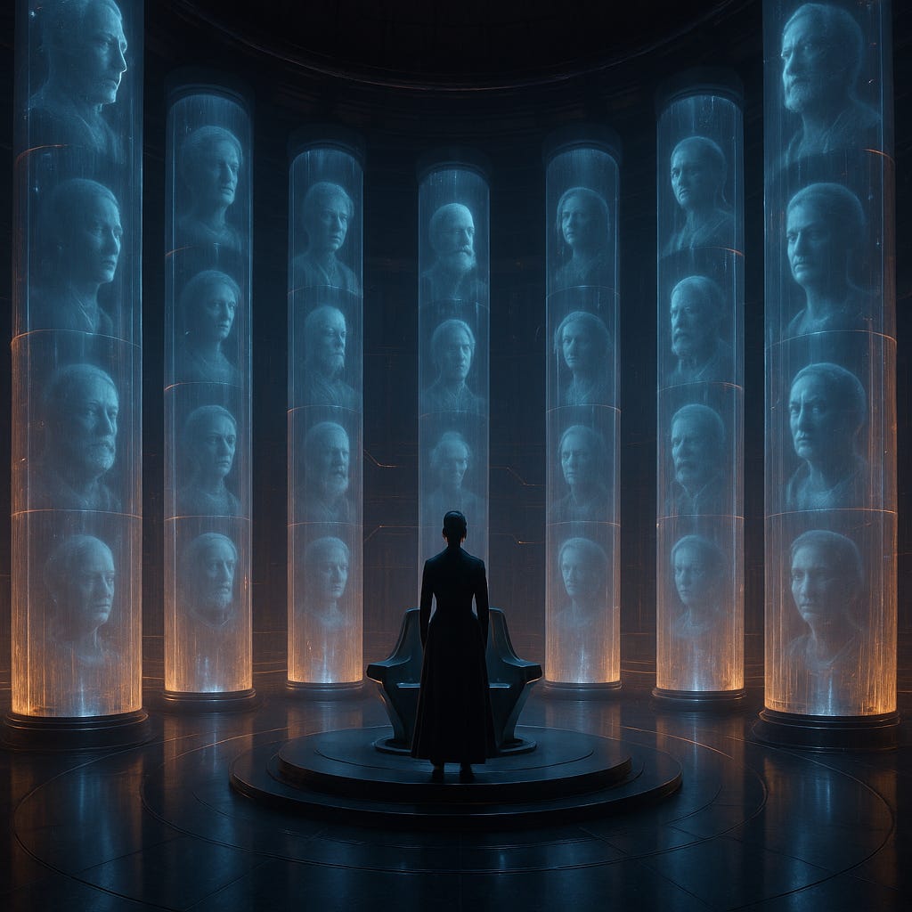 In John Scalzi's awesome space opera trilogy The Interdependency, Cardenia Wu-Patrick is elevated to the title of Emperox after her father dies — head of all government, spaceship and weapons production, Interdependent Church, and generally person-in-charge, just as you would expect from someone with the title of Emperox. She has a neural mesh implanted into her skull that records all of her brain functions. As soon as she becomes Emperox, she is introduced to the Memory Room; a room only she can access that stores all of the thoughts, memories, and personalities of every Emperox that came before her right back to the original prophet Rachela I over a thousand years ago. They are as objective and reliable as any memory, which is to say not, but she can talk to them, ask them what really happened, and solicit their advice.